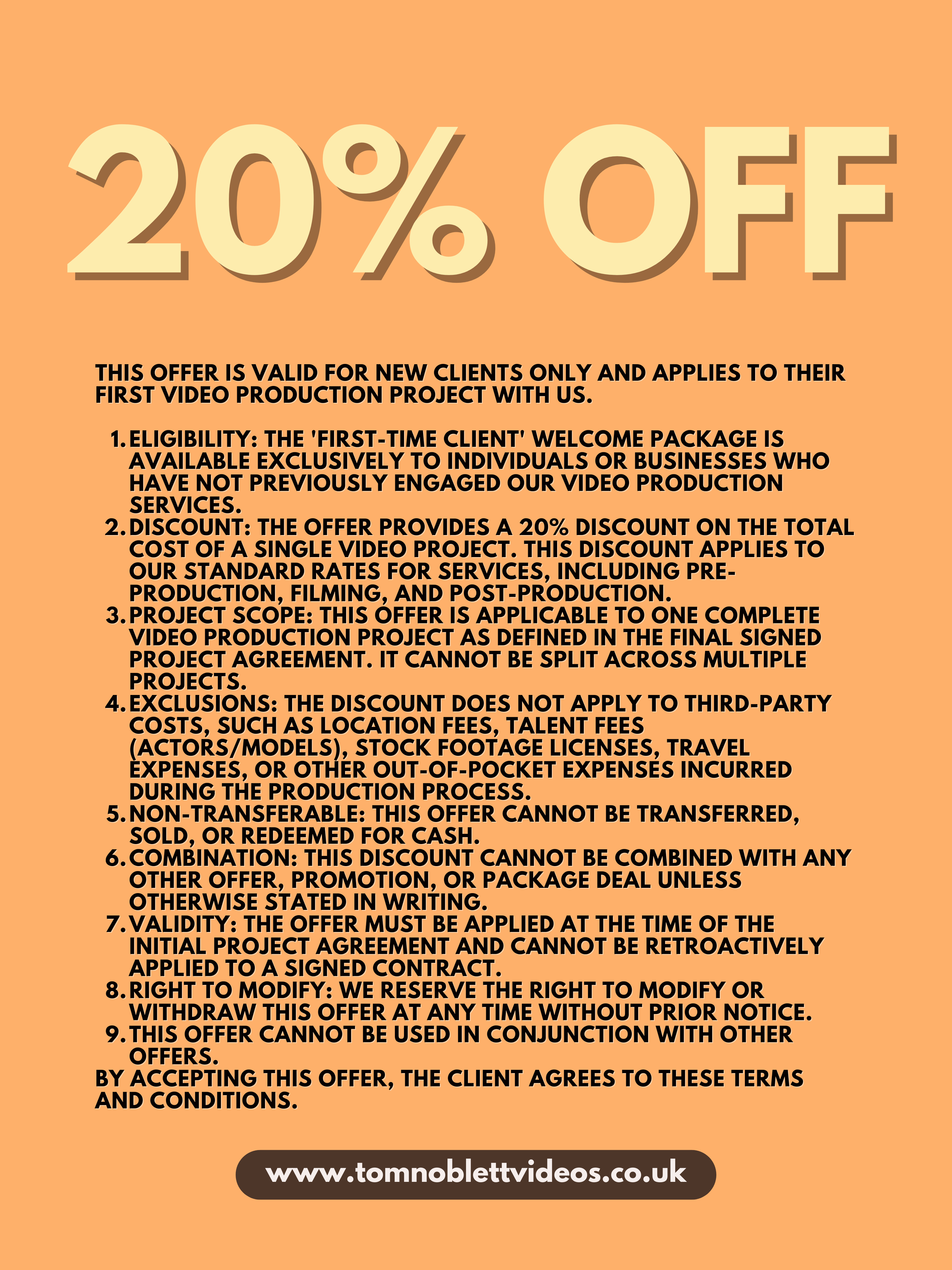 This page is your destination for unlocking incredible value on services that can transform your brand, engage your audience, and drive tangible results. From corporate videos and brand stories to animated explainers and social media content, these promotions are carefully crafted to meet diverse needs. The types of videos we run offers on are constantly changing, covering everything from wedding videos and event highlights to brand films and commercials. Be sure to keep an eye on this page regularly to get the best deals as soon as they drop!